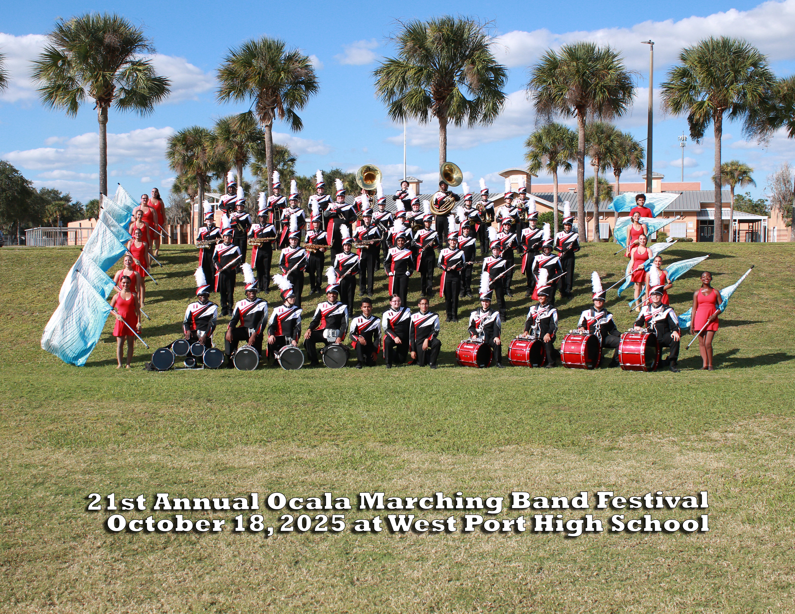 Group Photo of The Dunnellon High School Marching Band during The 21th Annual Ocala Marching Band Festival on October 18, 2025.