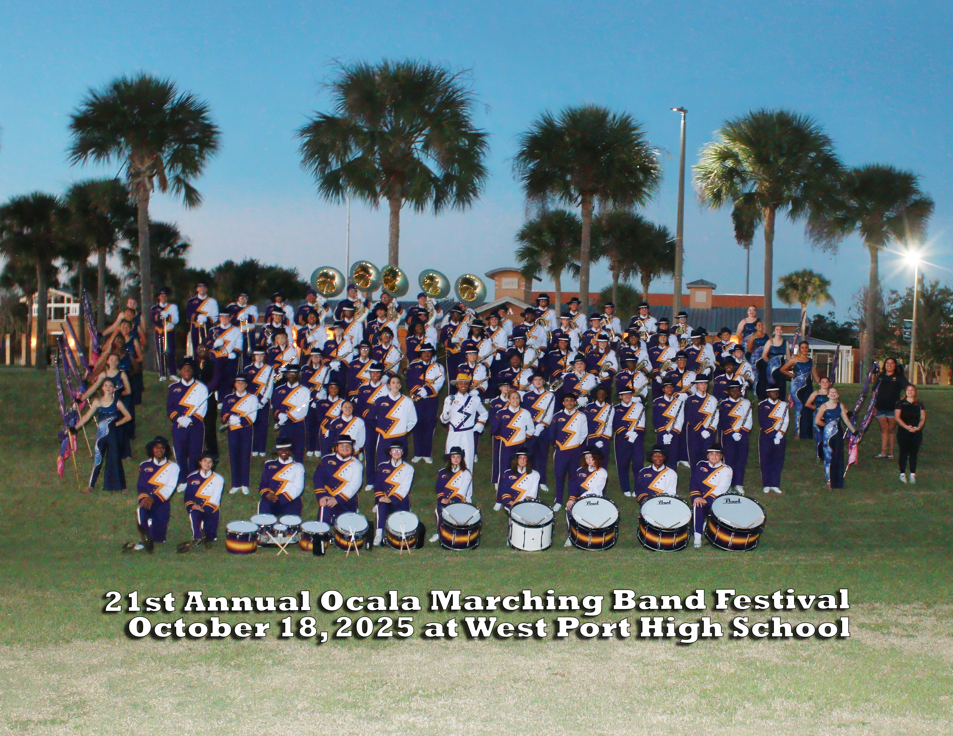 Group Photo of The Lake Weir High School Marching Band during The 21st Annual Ocala Marching Band Festival.