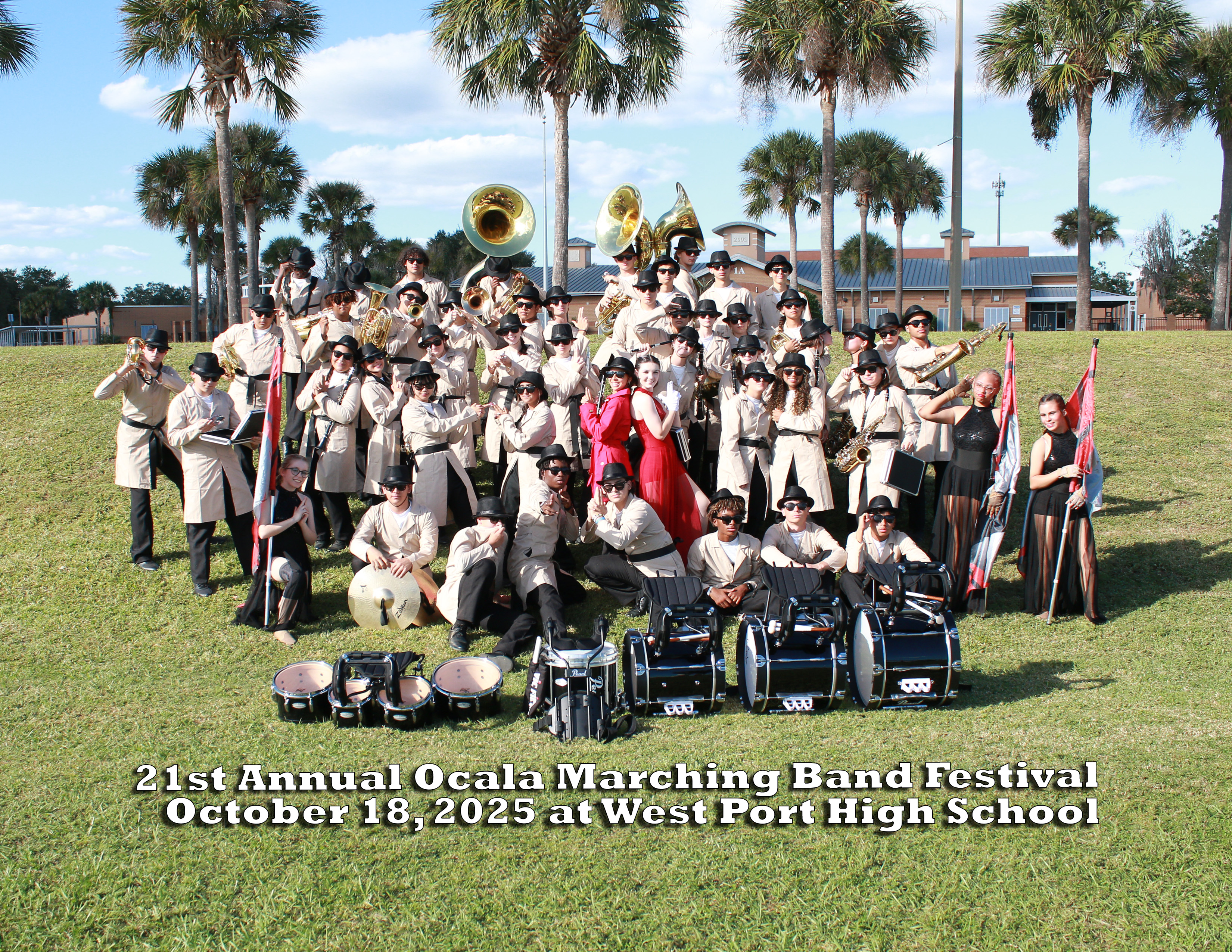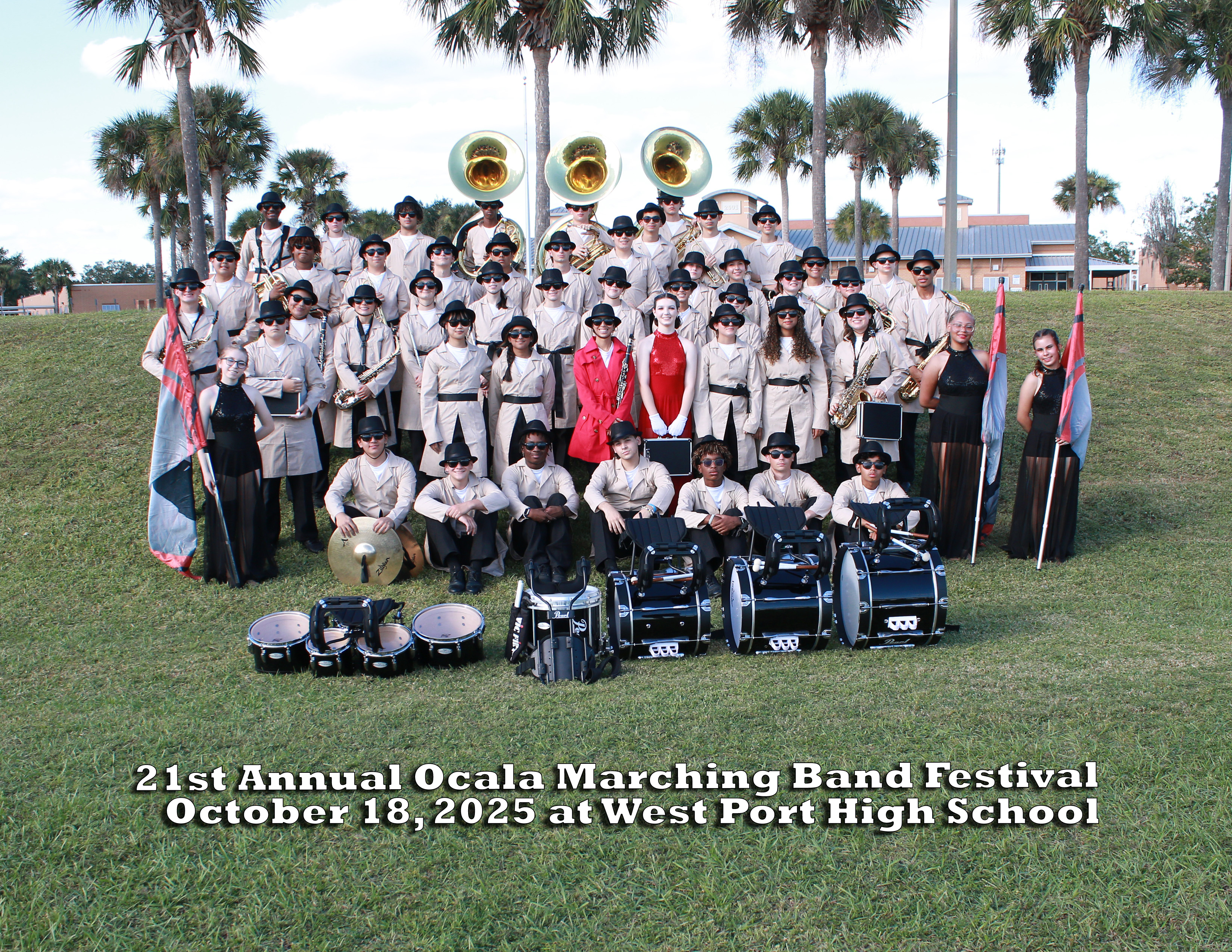 Group Photo of The Trinity Catholic High School Marching Band during The 21st Annual Ocala Marching Band Festival.